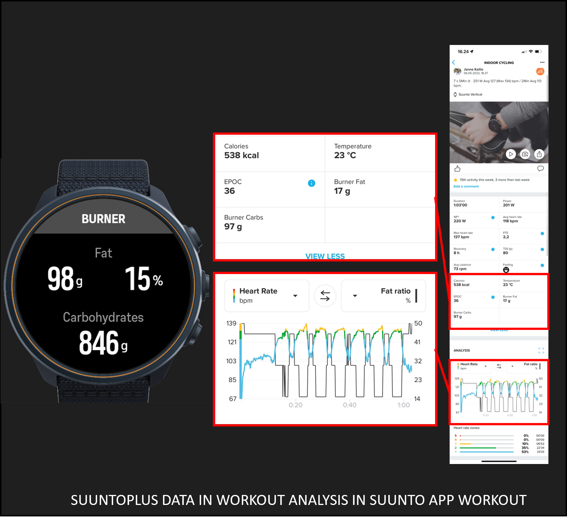 All app-generated data during a session is saved as part of the workout summary. These results are visible post-workout and are also stored in the workout FIT file, accessible via Suunto Cloud API.
